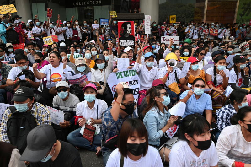 Some of the biggest protests in recent weeks were staged on Sunday. Police fired stun grenades and tear gas to break up a sit-in by tens of thousands of people in Mandalay, the Myanmar Now media group said. At least 70 people were arrested.