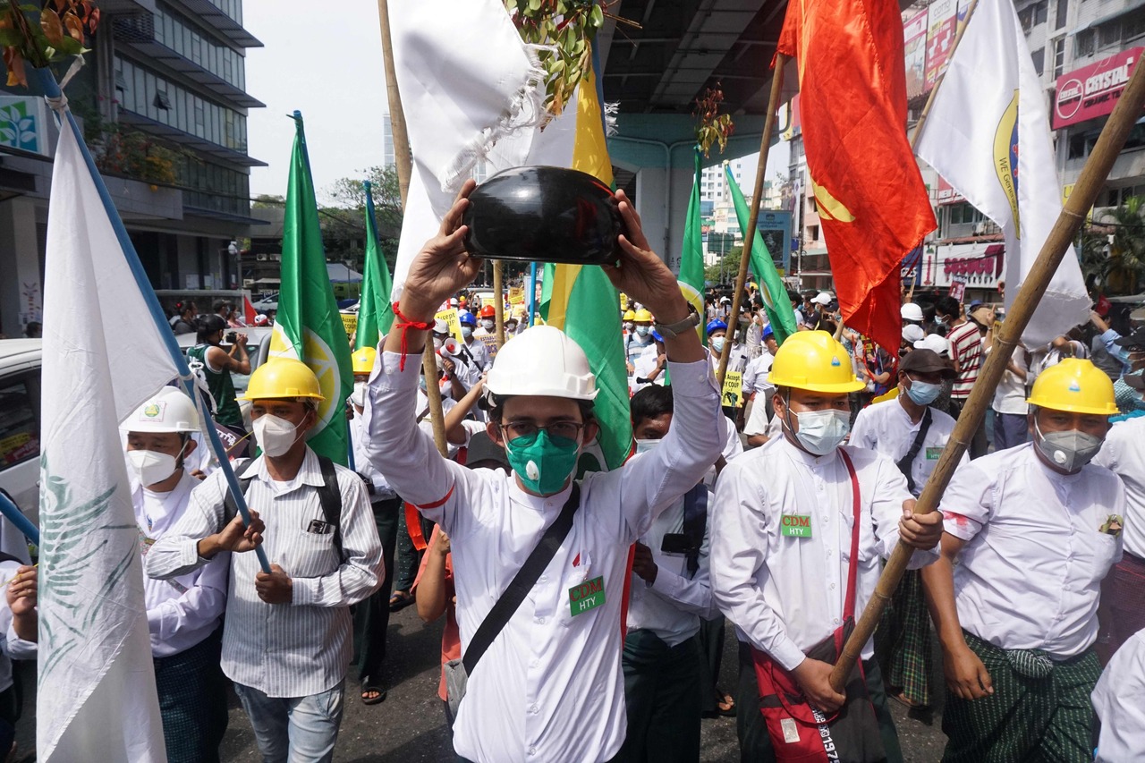 Mr Min Ko Naing, a leader of the 1988 pro-democracy uprising, urged government workers to continue their strike, saying on Facebook that it was the most important factor in the bid to bring down the regime.