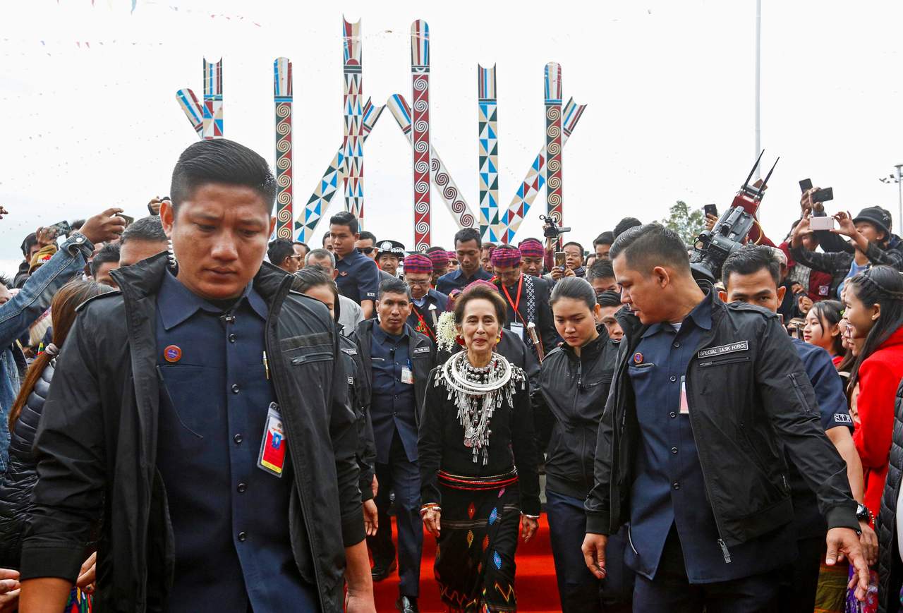 Myanmar State Counsellor Aung San Suu Kyi attends the 72nd Kachin State day ceremony in Myitkyina on Jan 10, 2020.
