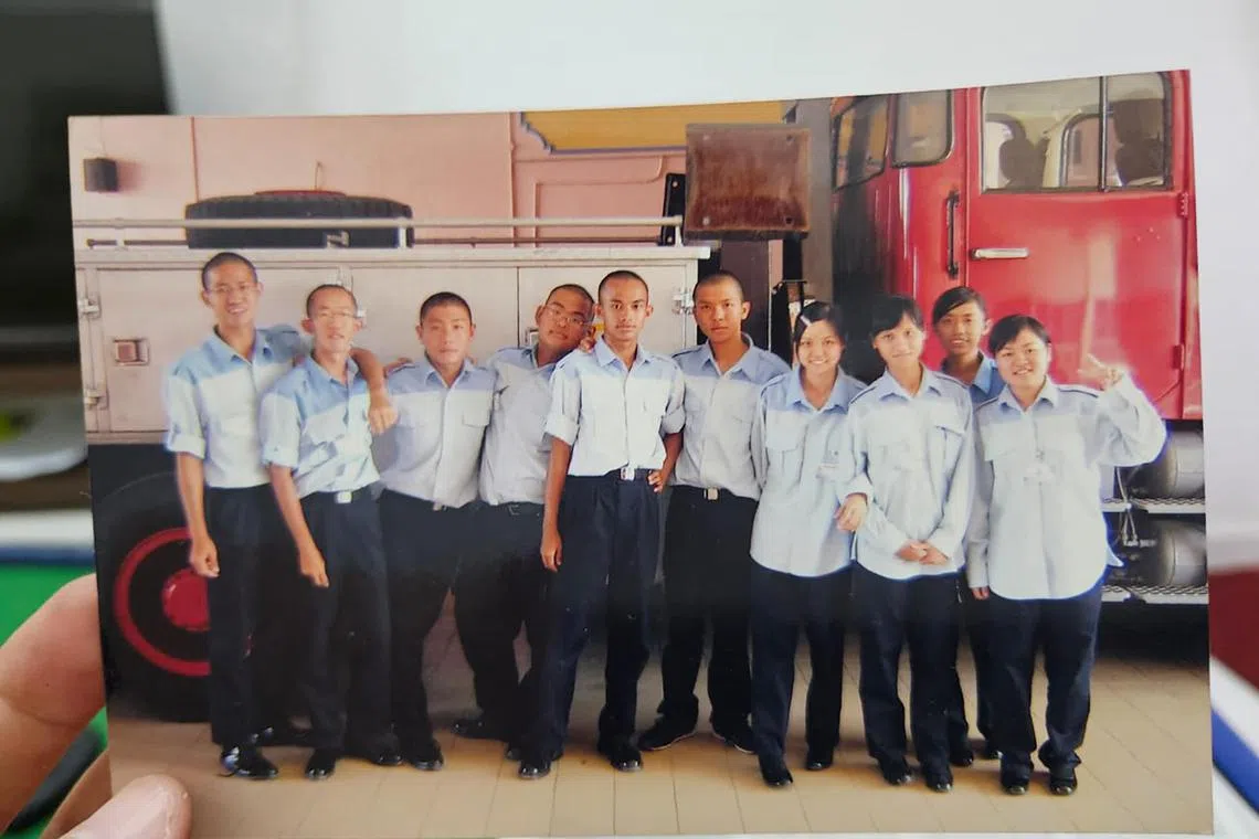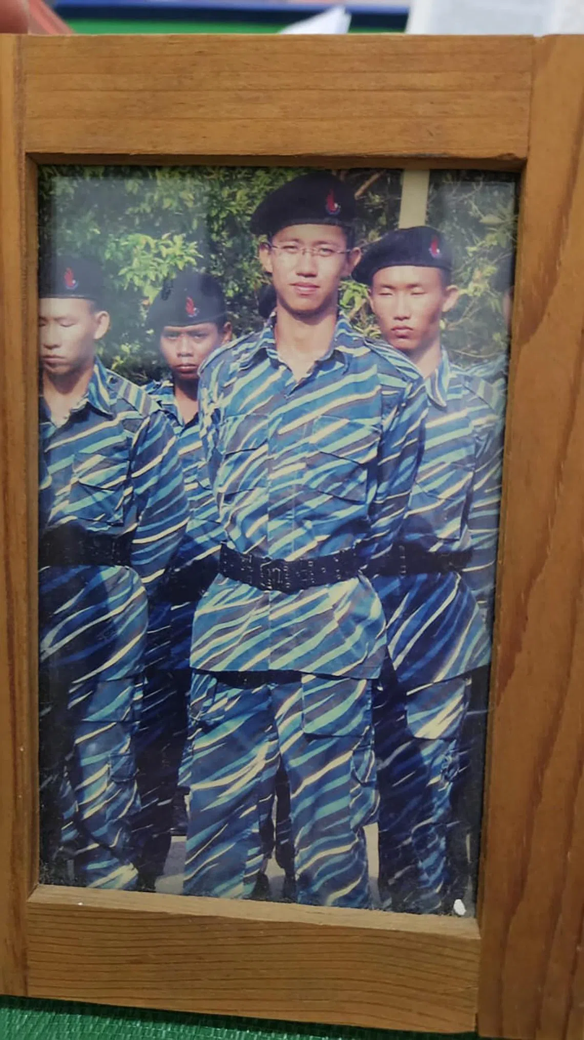 Mr Kee Jia Jun wearing a trainee uniform during his national service stint at 18 years old.