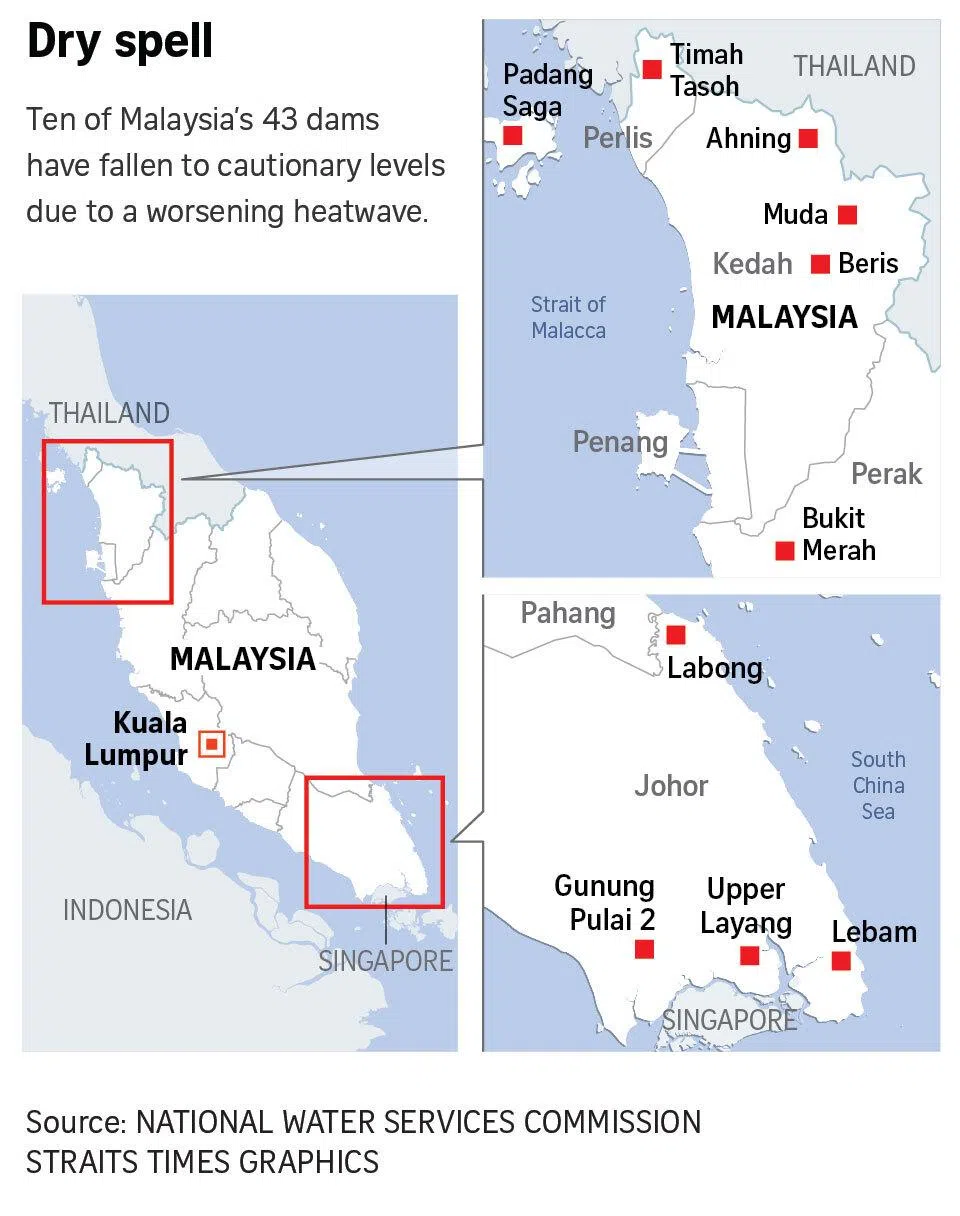 - Kedah's Muda Dam is critically low (7.72%), affecting water supply for over a million households. Cloud seeding efforts have been unsuccessful.