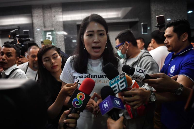 Future Forward Party spokesperson Pannika Wanich speaks to the press at the Thai political party’s headquarters in Bangkok on Feb 21, 2020.