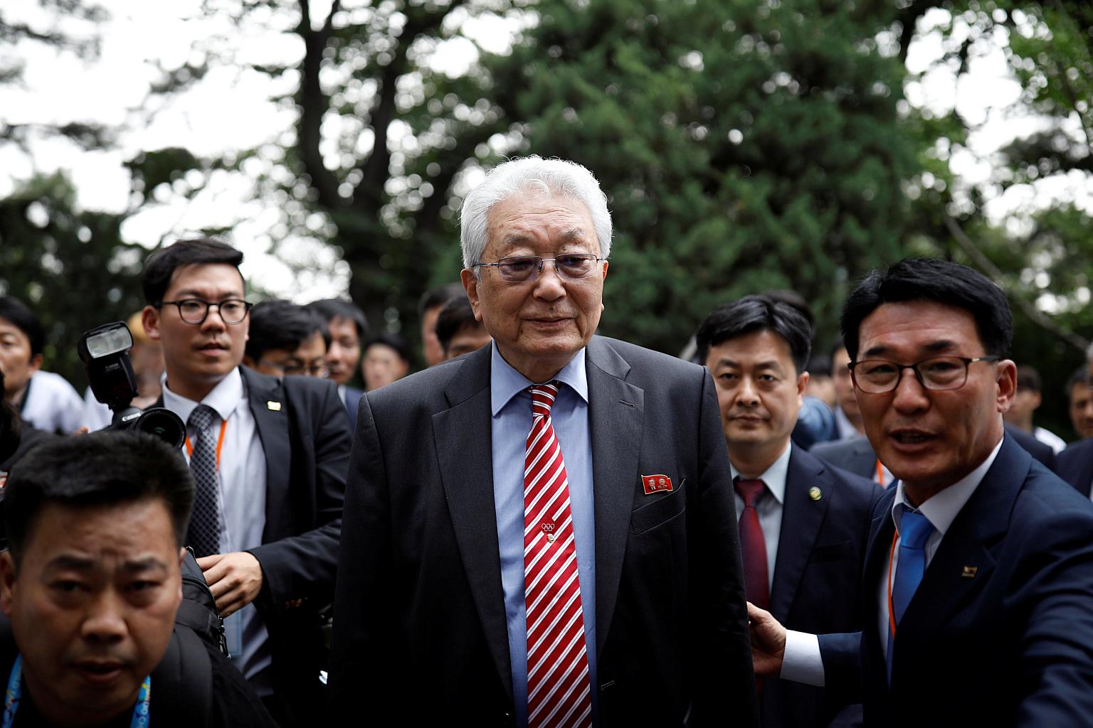 Pyongyang's IOC representative Chang Ung (centre) made the brief comment during a stopover at Beijing's international airport.