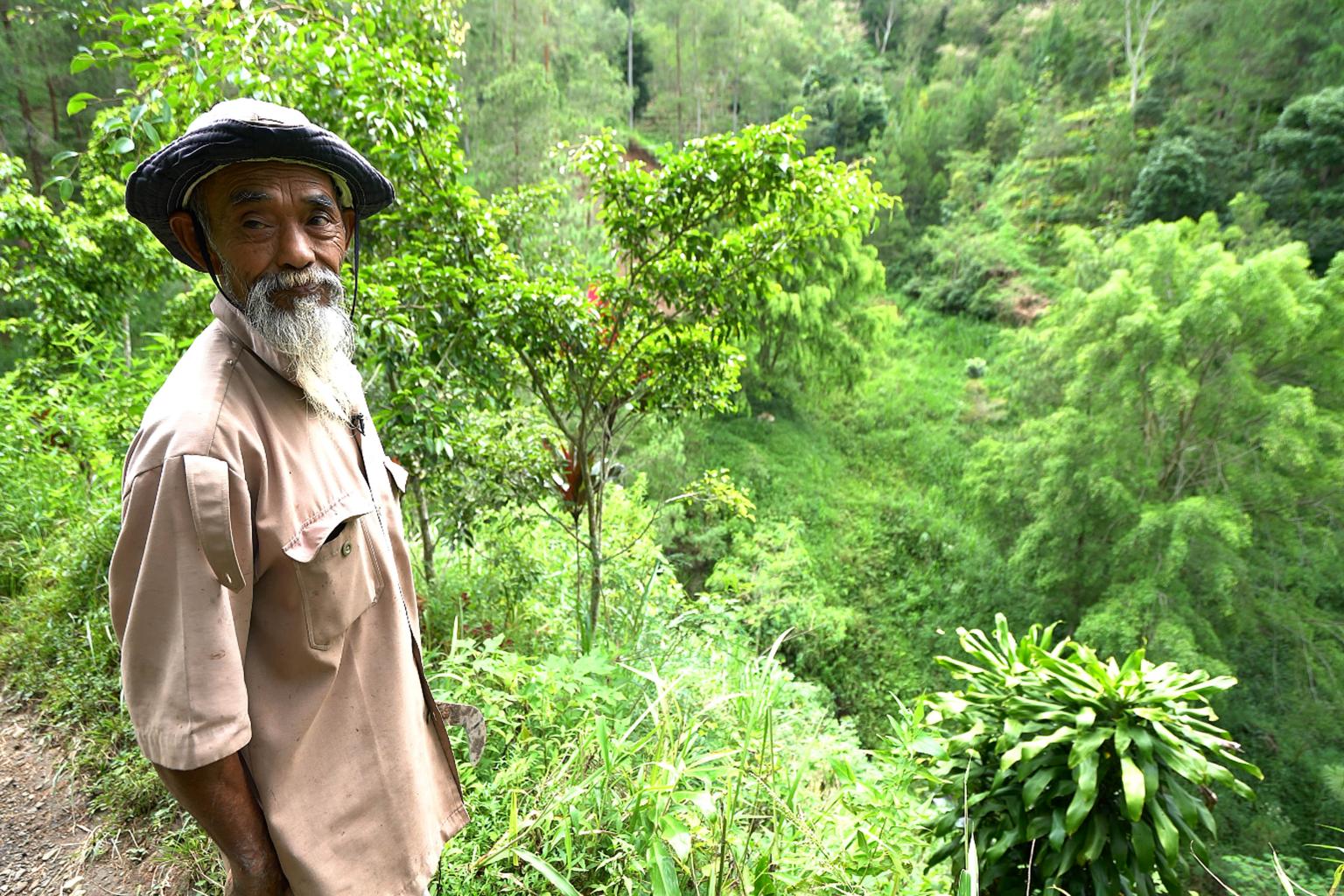 Affectionately addressed as "mbah" or "grandpa", the 69-year-old has worked relentlessly to plant trees in the hills of central Java after fires to clear the land for cultivation nearly dried up its rivers and lakes.