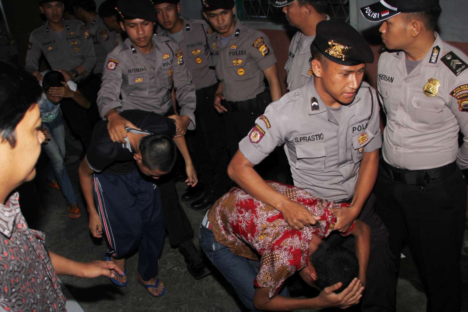 Indonesian police escort teen suspects accused of the gang-rape and murder of a 14-year-old girl on May 10, 2016, in Curup, Bengkulu province, in a case that sparked nationwide debate.