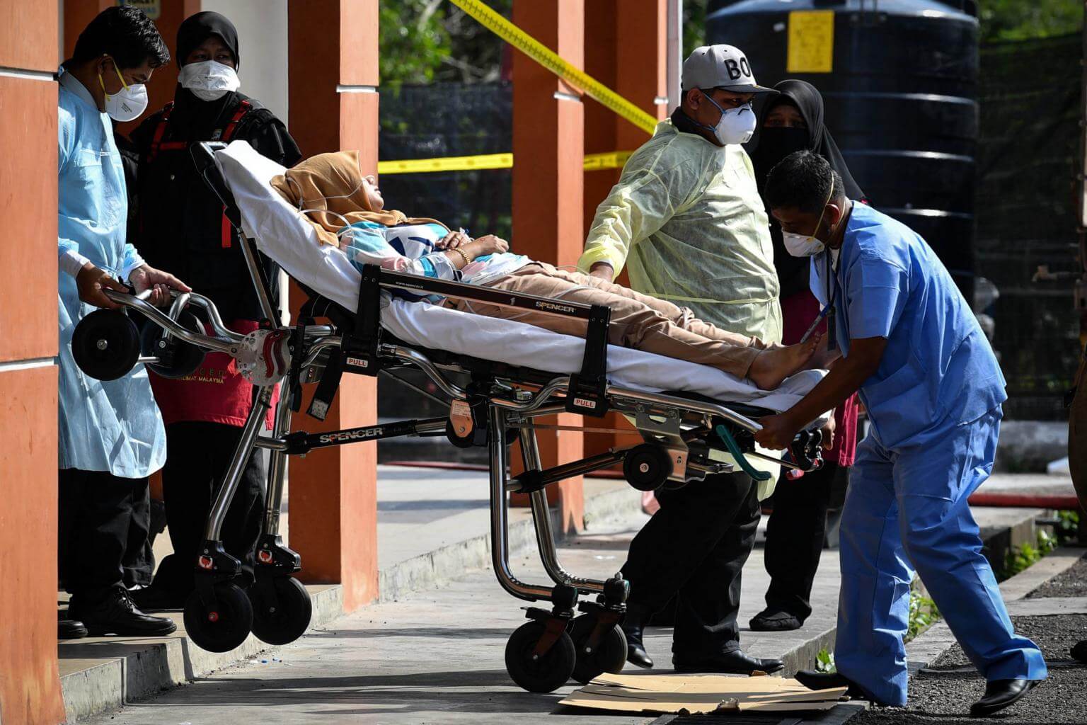 A villager being taken to Sultan Ismail Hospital for further treatment after receiving initial treatment at the Ground Command Centre at Pasir Gudang Pasir Park Community Hall on March 14.