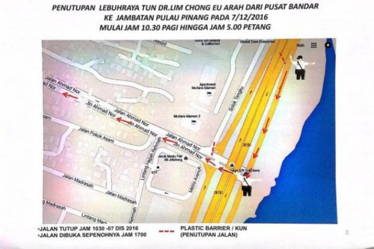 The closure involves the expressway heading towards Penang Bridge from Jalan Ahmad Nor junction, he said.