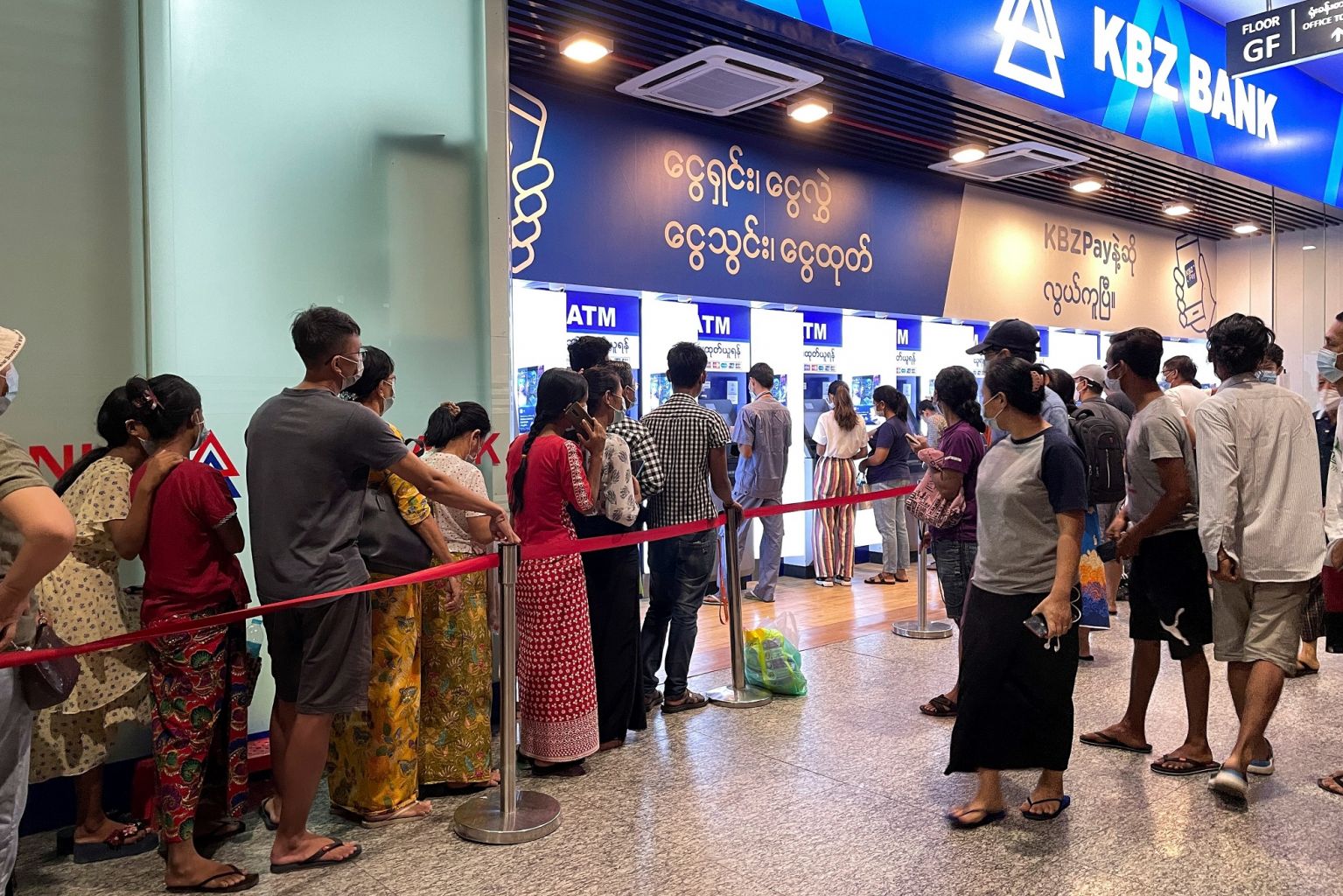 People in Myanmar wait hours to withdraw cash, but most ATMs are empty