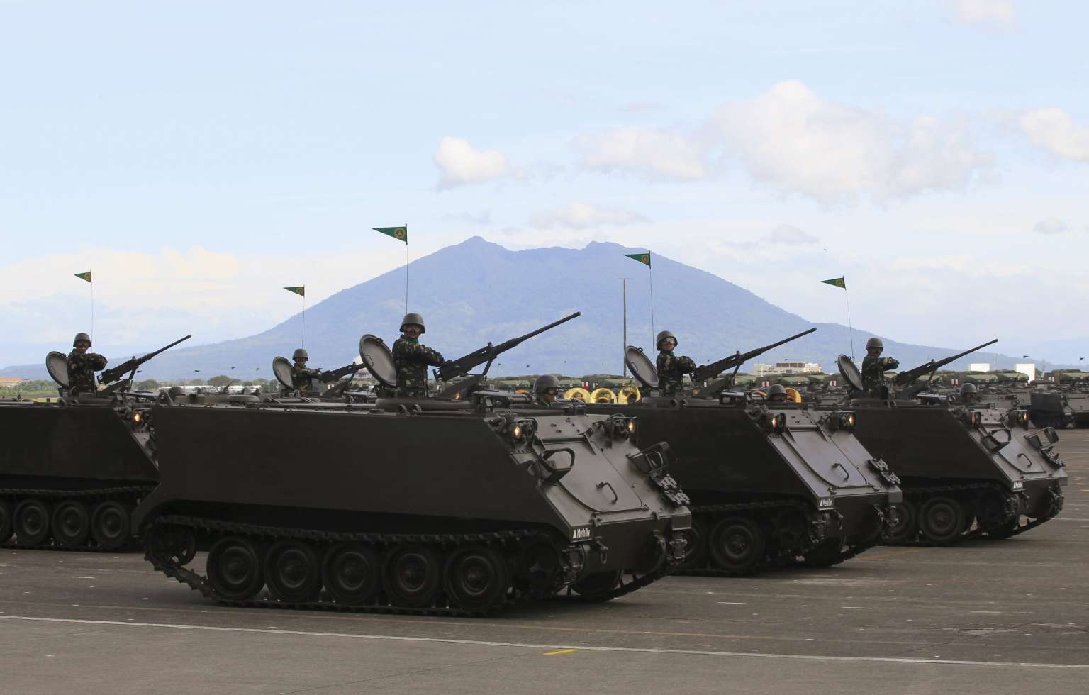 A column of tracked armoured vehicles roll by in a parade marking the 80th anniversary of the founding of the Armed Forces of the Philippines at Clark Air Base on Dec 21, 2015.