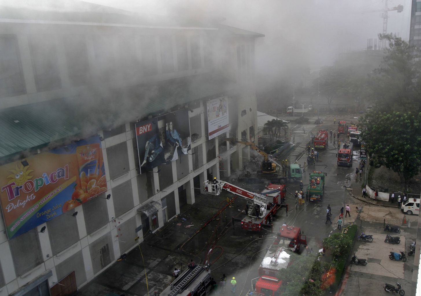 Firefighters battling a fire that broke out in a shopping mall in Cebu city on Jan 6, 2018.