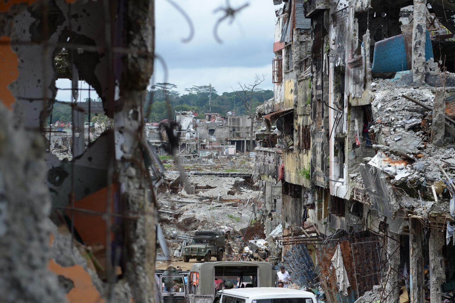 Bombed-out buildings inside of what was the main battle area between government troops and militants in Marawi, on Oct 25, 2017.