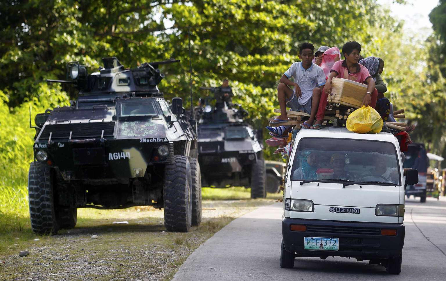 People driving past an armoured personnel carrier (APC) in Kauran, Ampatuan in the southern Philippine province of Maguindanao, on Dec 24, 2015.
