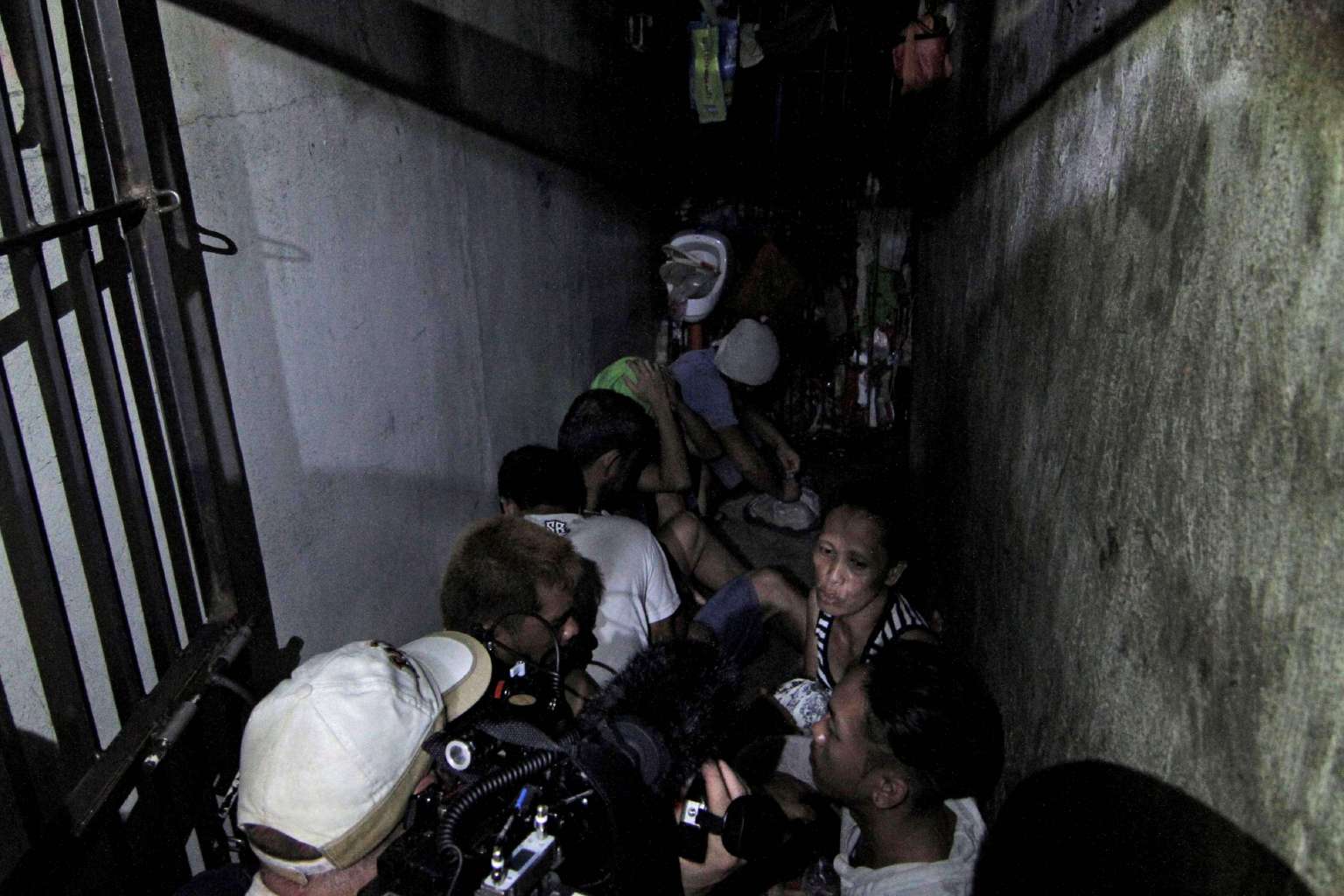 People allegedly kept inside a hidden room at the Drug Enforcement Unit of the Manila Police Department's Police Station 1 in the Tondo area of Manila.