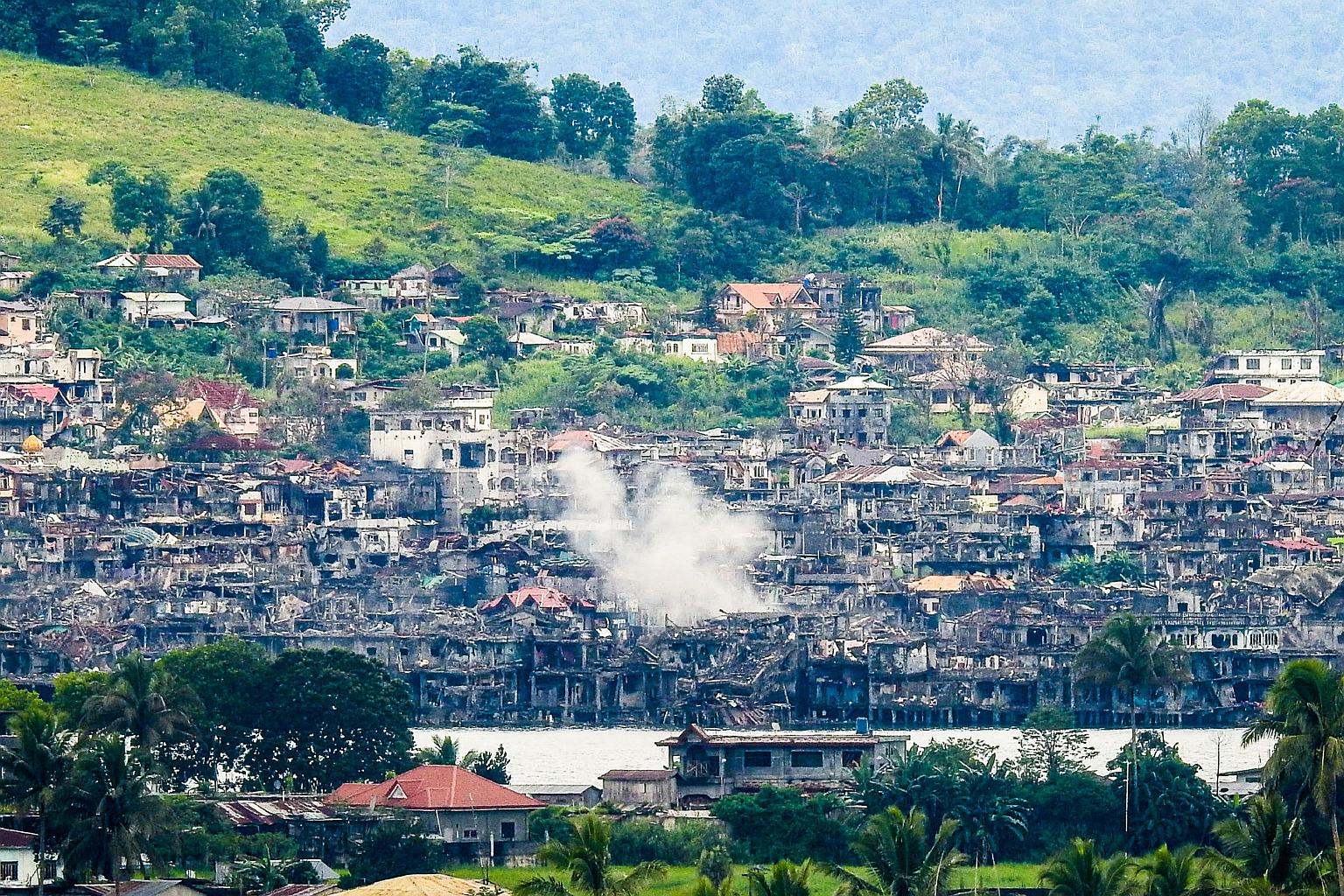 Smoke billows from destroyed buildings after government troops fired mortars at an ISIS position in Marawi on the southern island of Mindanao on Oct 15, 2017. Philippine President Rodrigo Duterte on Tuesday (Oct 17) declared Marawi City liberated from pro-ISIS militants.