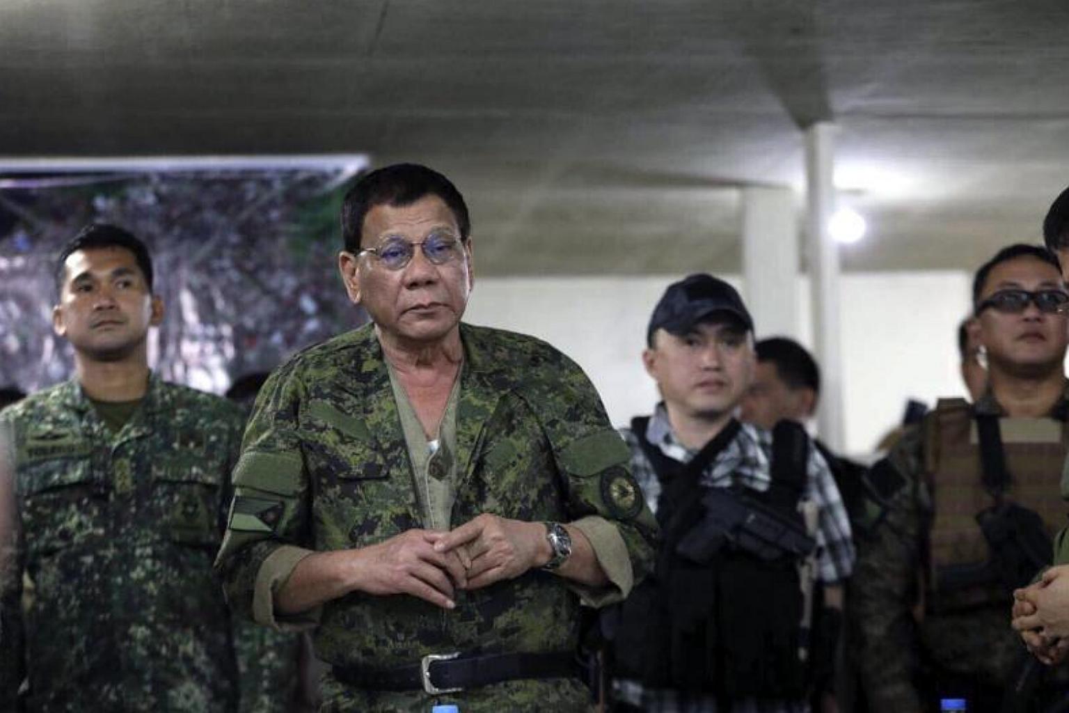 The president, who declared martial law over the southern Philippines as the fighting began on May 23, stayed inside the camp, inspecting firearms seized from the militants, before departing, the spokesman said.