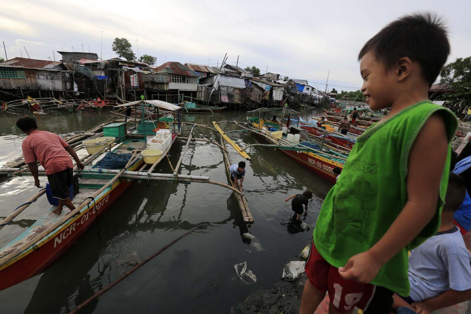 Filipino villagers cross a polluted river in Las Pinas city, south Manila, Philippines on Sept 5, 2016.