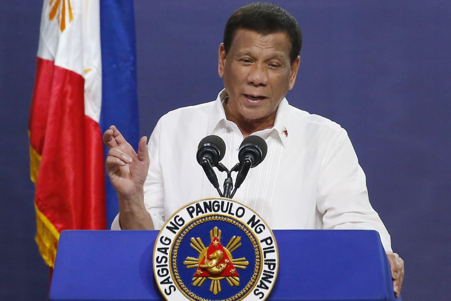 Philippine President Rodrigo Duterte speaking in suburban Quezon city, north-east of Manila, Philippines, on Aug 27, 2019.
