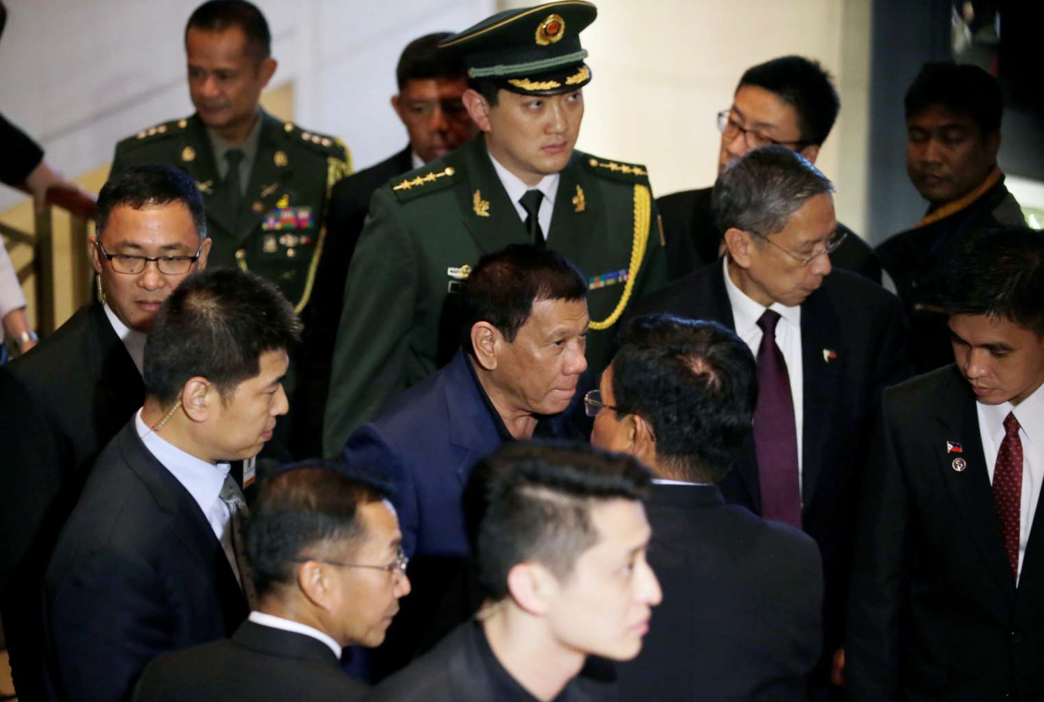 Philippines' President Rodrigo Duterte leaves a hotel in Beijing, China, Oct 21, 2016.