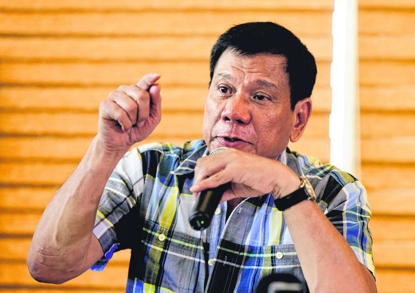 Rodrigo Duterte speaks at a press conference before he meets well-wishers in Davao City, southern Philippines, on May 16, 2016.
