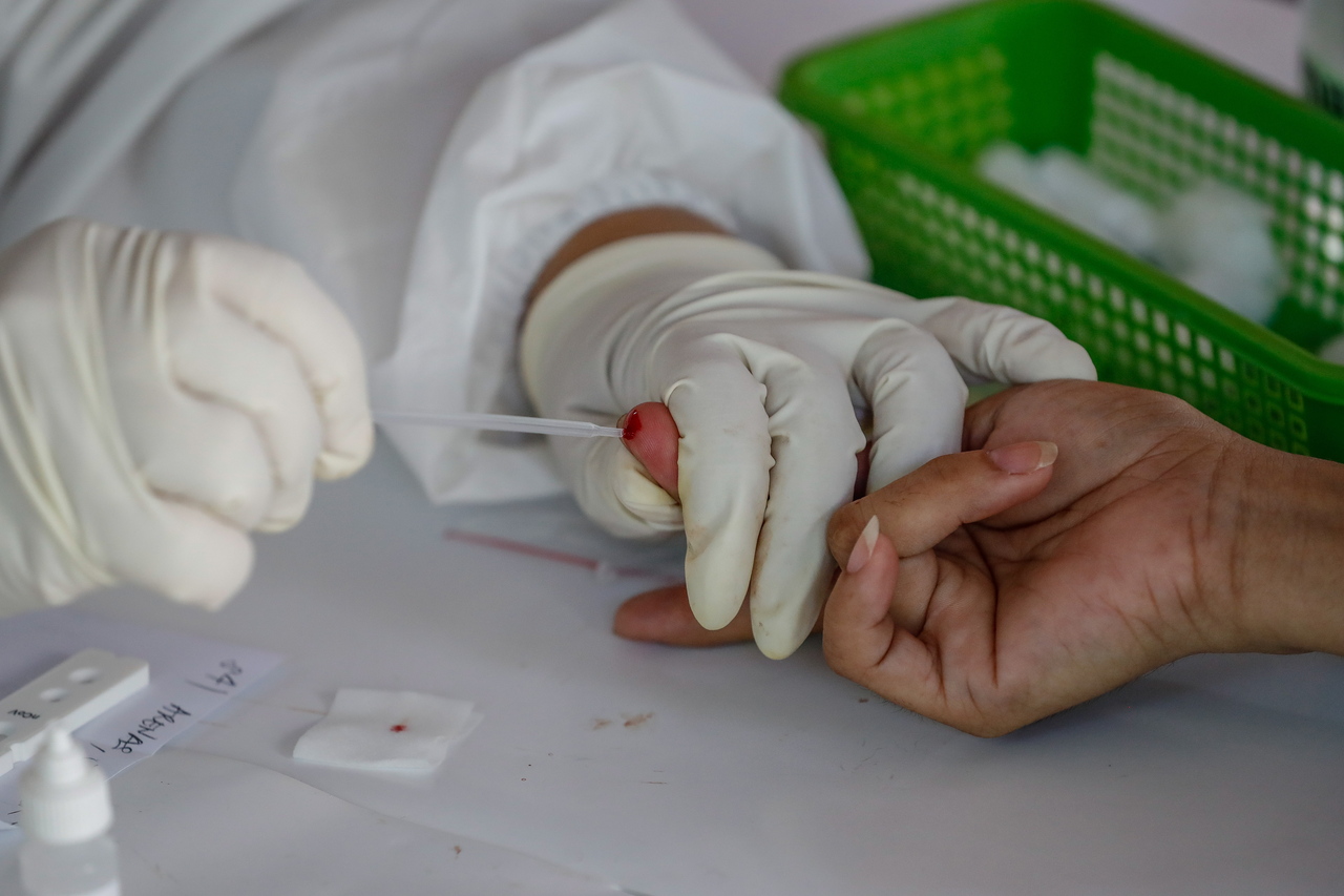 A woman undergoes a rapid test at testing facility in Manila, Philippines, on May 24, 2020.