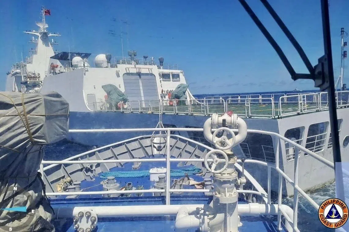A Chinese Coast Guard vessel (front) blocking a Philippine Coast Guard ship during a resupply mission in the South China Sea on Aug 5.