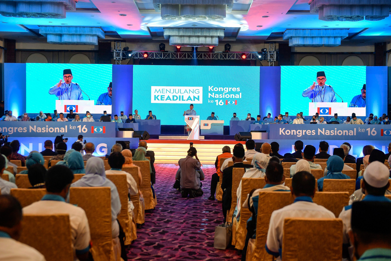 PKR president Anwar Ibrahim delivers a speech at the party's national congress in Shah Alam on July 16, 2022.
