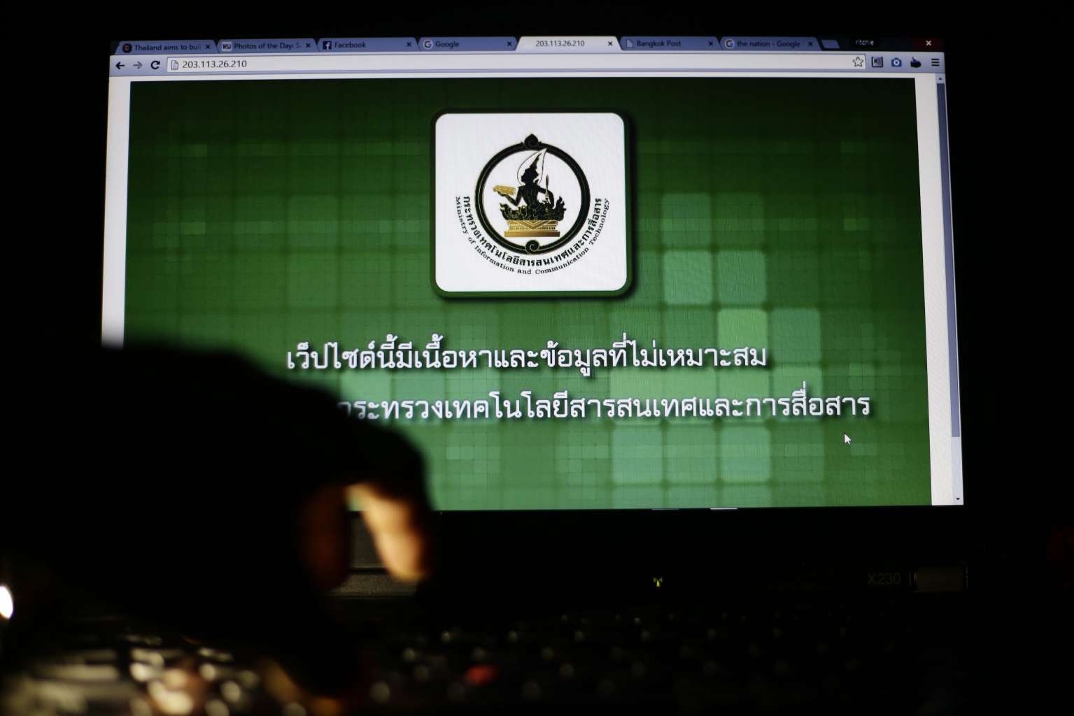 The Thai censorship logo is pictured from a laptop in Bangkok, Thailand, on Sept 25, 2015. According to news reports, Thai Prime Minister Prayut Chan-o-cha ordered related ministries to setup a single gateway for all internet traffic, to monitor online contents and information that comes to Thailand.