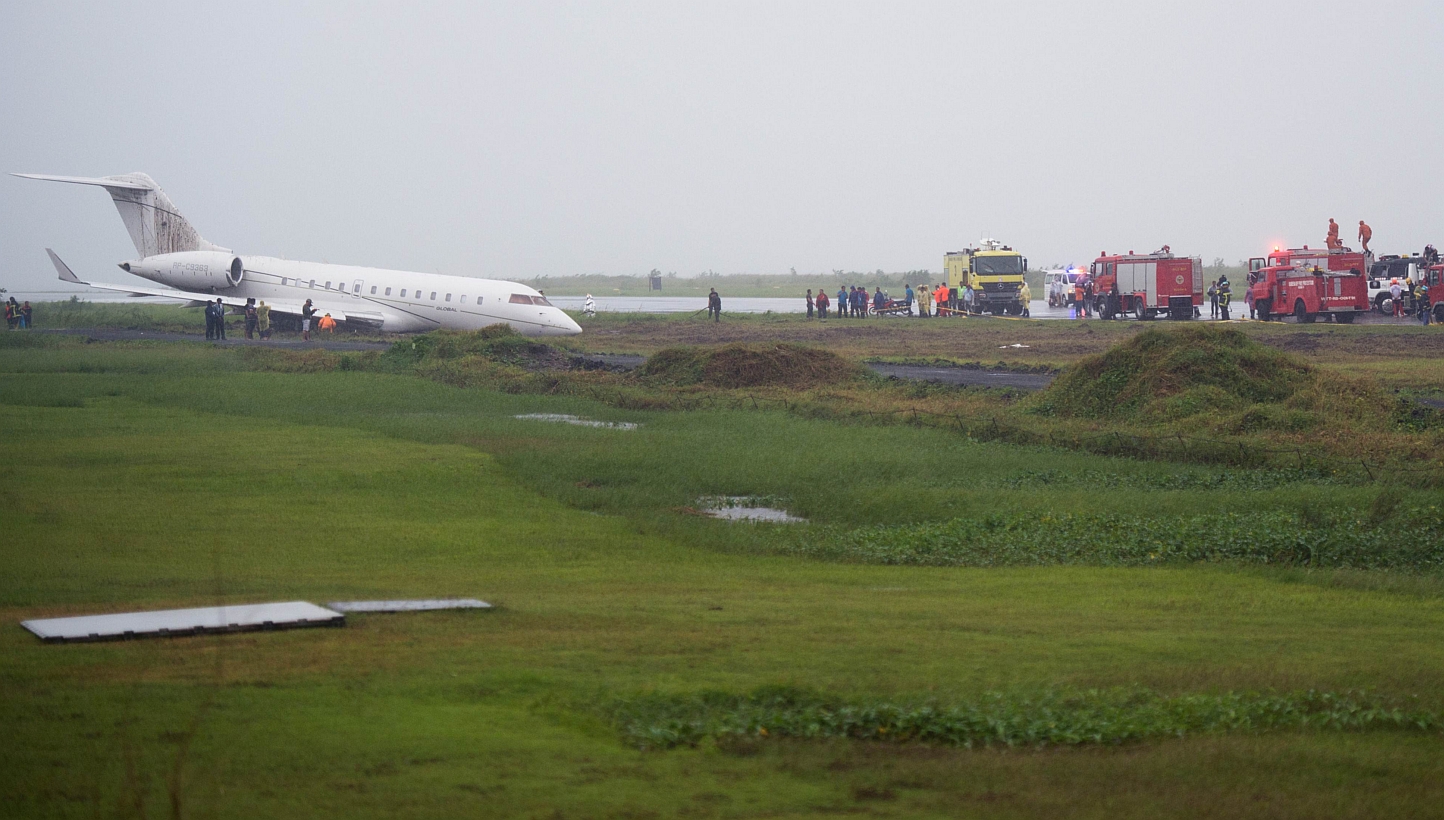 Plane with top aides of Philippine president overshoots runway in stormy weather
