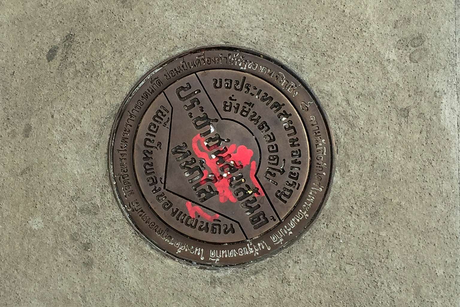 The plaque, which was embedded in a square in central Bangkok, was removed and replaced with a new one which highlights the importance of the monarchy. "It is good to worship the Buddhist trinity, the state, one's own family, and to be faithful to one's monarch and allow oneself to be the engine that brings prosperity to the state,"the new plaque reads.