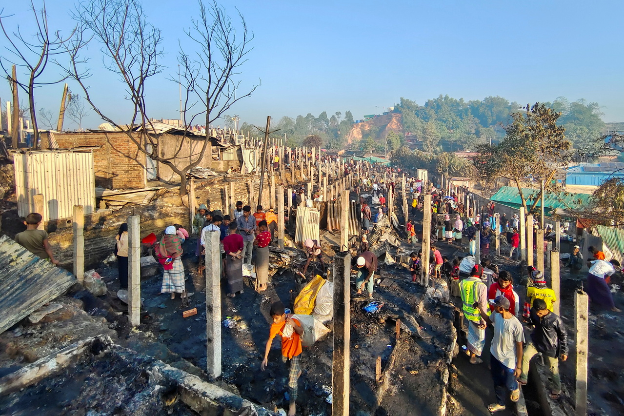 ISLAMABAD (DAWN/ASIA NEWS NETWORK) - A huge blaze in a refugee camp housing members of the Rohingya community in Bangladesh last week has left up to 5,000 people homeless, highlighting the miserable conditions the group continues to live in.