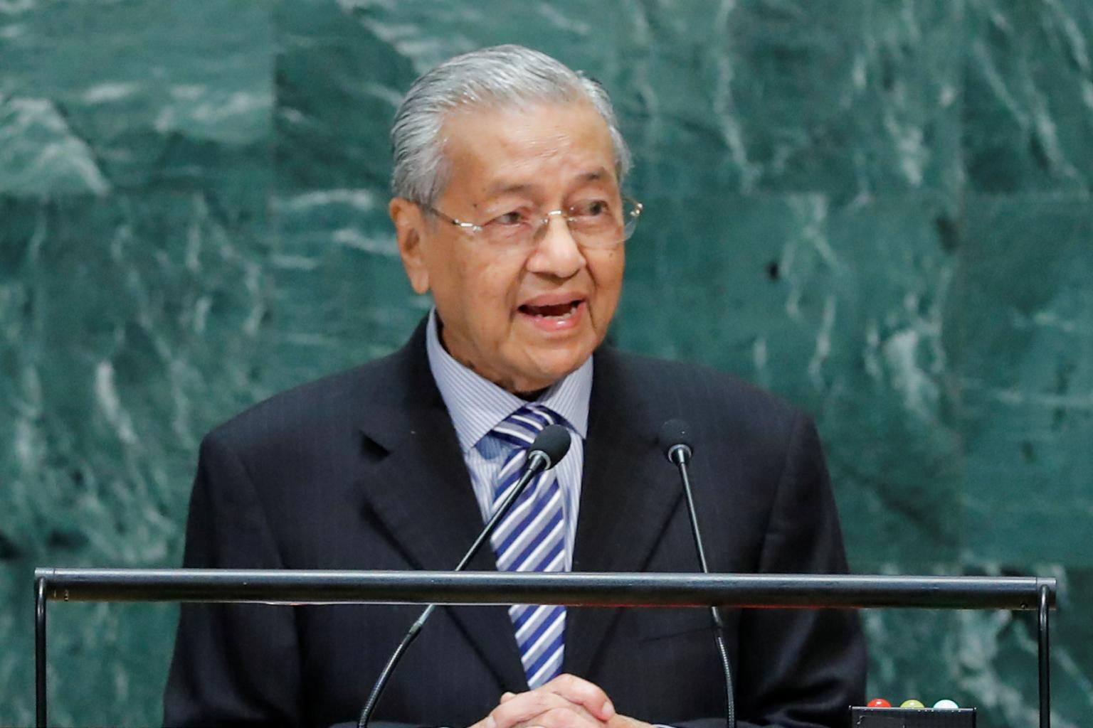 Malaysian Prime Minister Mahathir Mohamad speaking at the UN headquarters in New York City, on Sept 27, 2019.