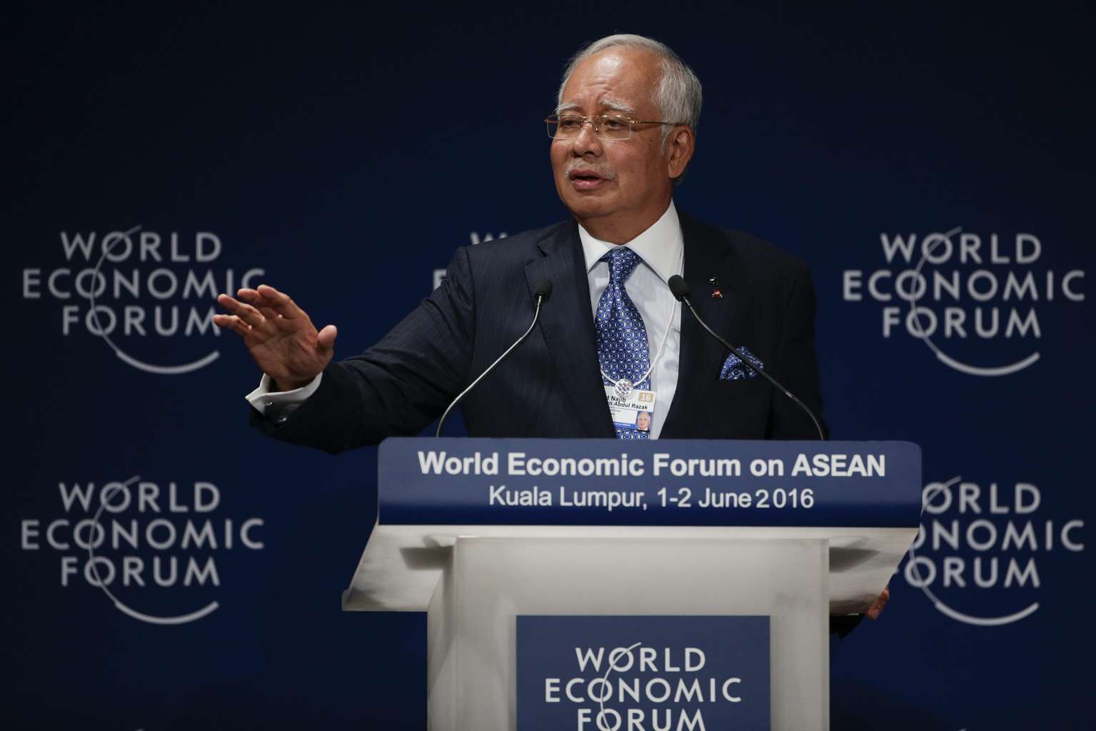 Malaysian Prime Minister Najib Razak speaks at the World Economic Forum on Asean in Kuala Lumpur on June 1, 2016.