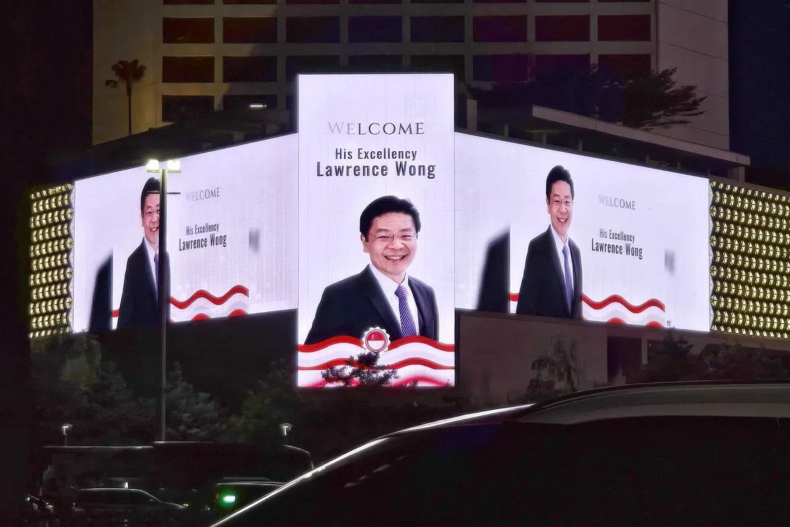 A welcome message for Prime Minister Lawrence Wong is displayed on the Mandarin Oriental hotel in Jakarta on Nov 5.