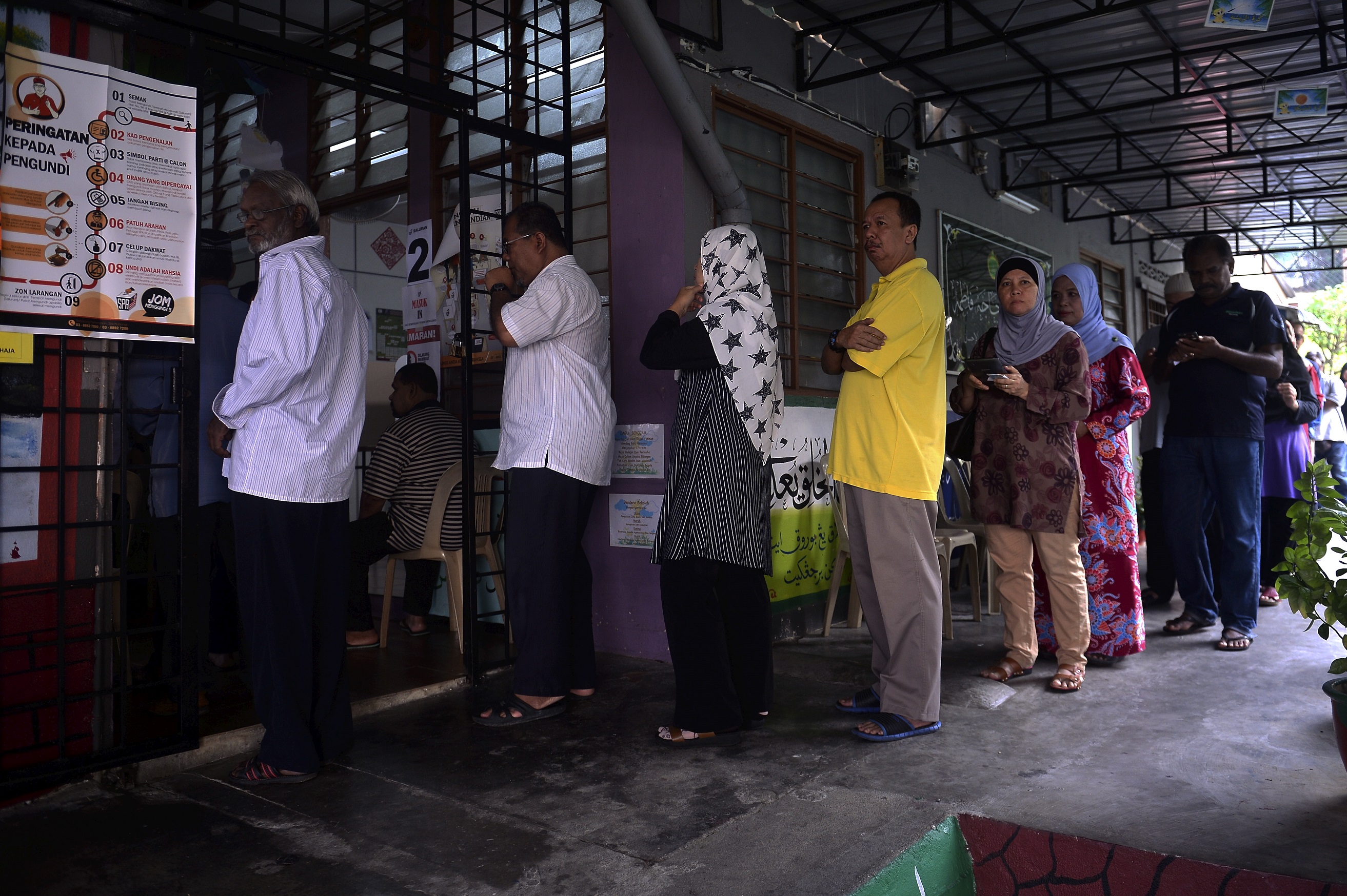 People queuing to vote for the by-election of the Selangor state seat of Sungai Kandis, the first vote to be held since Malaysia's May 9 general election.