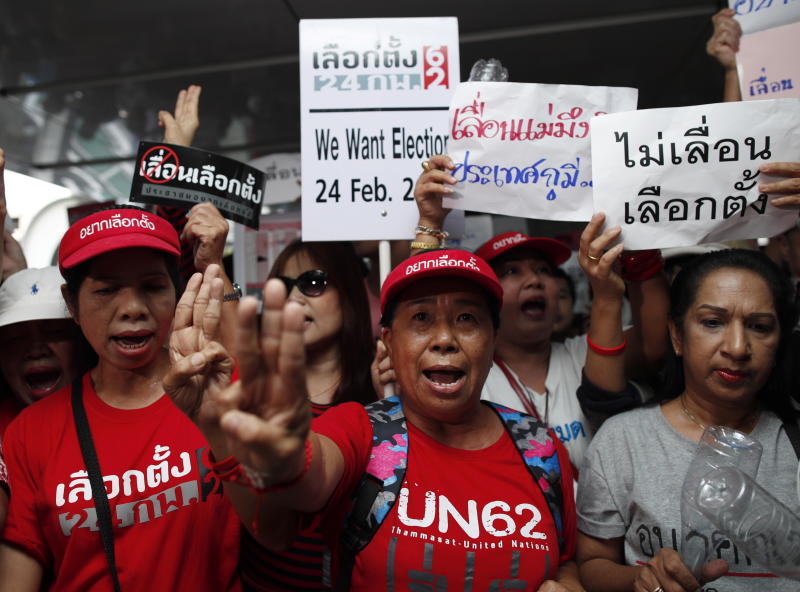 "The objective for today is to secure a date for the election after five postponements," Nuttaa Mahattana, one of the leaders of the group, said on her Facebook page.