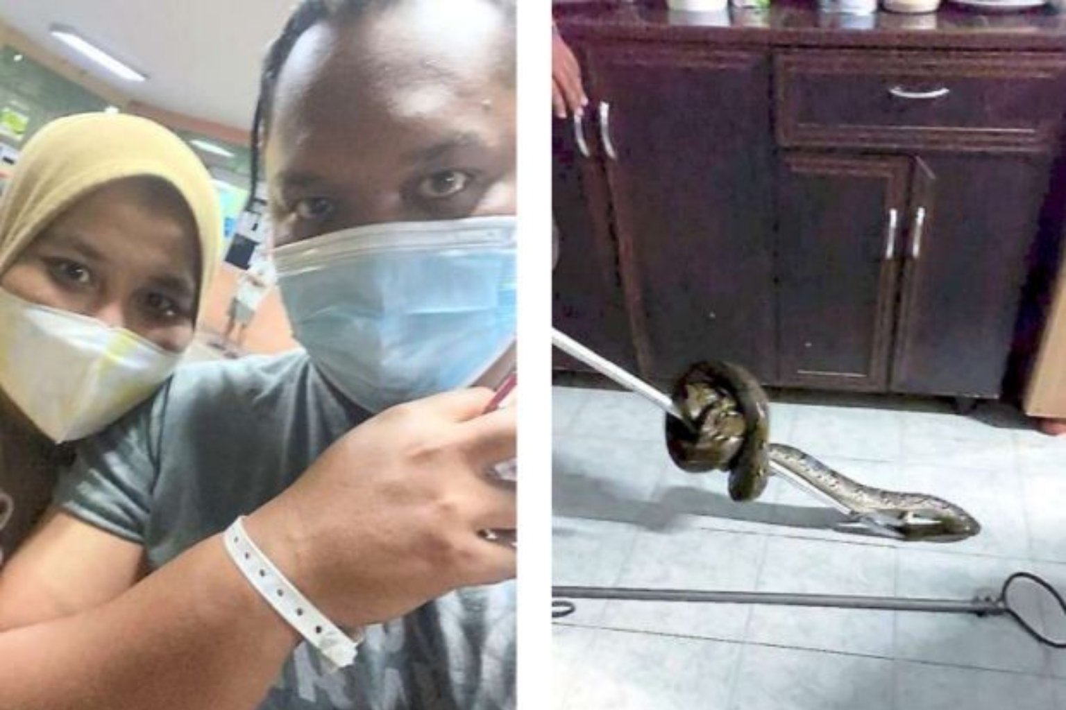 He then called the nearby Fire and Rescue Department and the python was captured. He went to Hospital Selayang for treatment and doctors gave him an anti-tetanus shot.