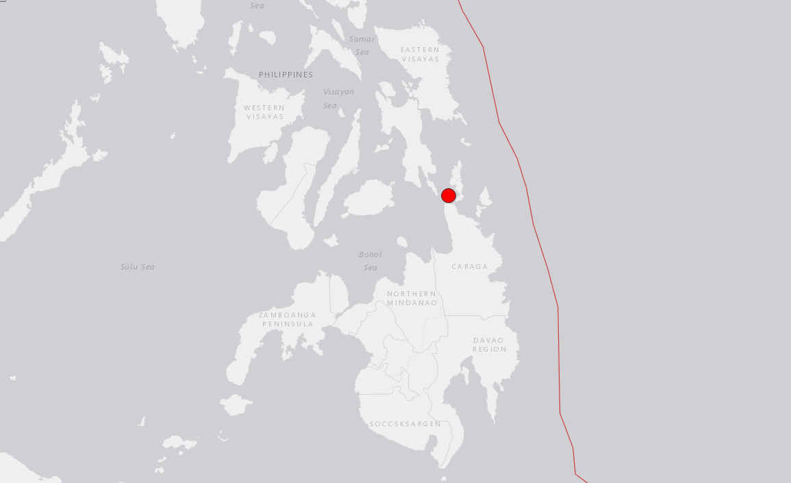 The quake occurred at a depth of 10km about 13km east of the city of Surigao.