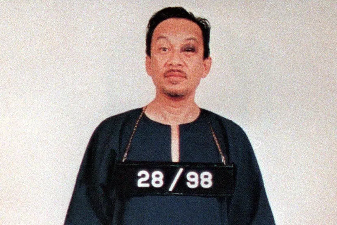 A handout photo shows Datuk Seri Anwar Ibrahim in prison with a black eye after he was beaten by former police chief Rahim Noor in 1998.