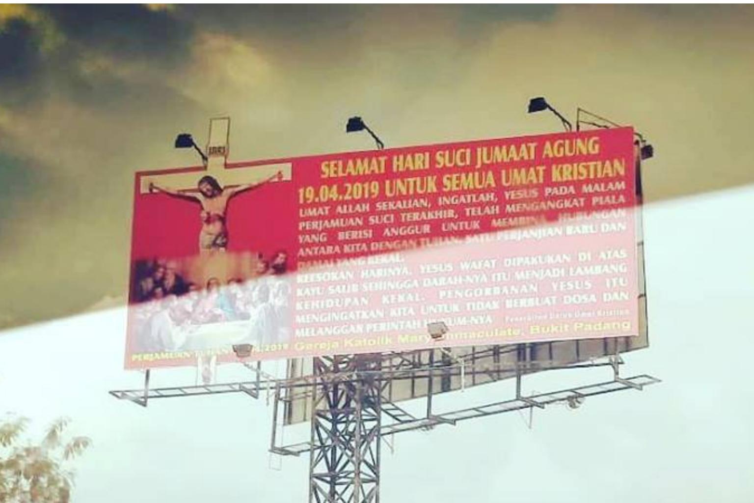 The posting was accompanied by a photo of a billboard in Kota Kinabalu, capital of Sabah state, which had a special message for the Christian community in conjunction with Good Friday (April 19).