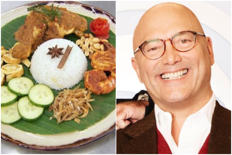 (Left) Zaleha Kadir Opin's nasi lemak with chicken rendang and prawn sambal dish that got her eliminated from MasterChef UK. Gregg Wallace, a judge on the show, was slammed for his "crispy skin" rendang remark.
