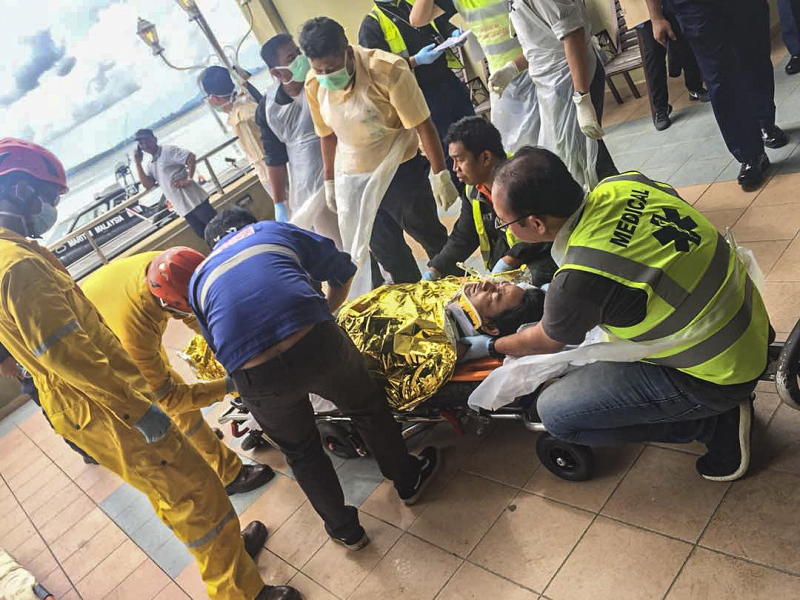 Rescuers help one of the victims of the sinking, on July 2, 2018, in Johor, Malaysia.