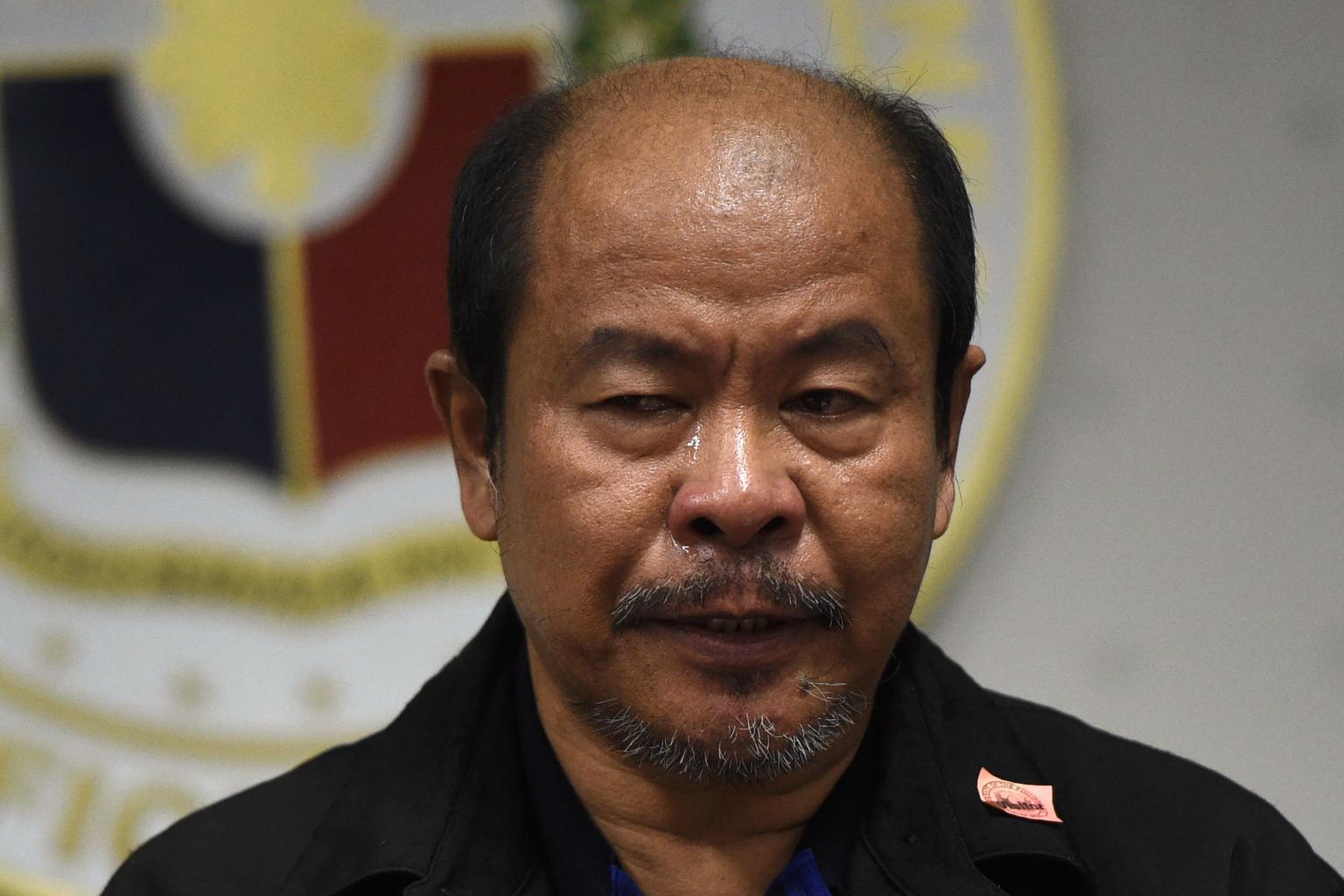 Former police officer Arturo Lascanas speaking at a press conference at the senate in Manila on Feb 20, 2017.