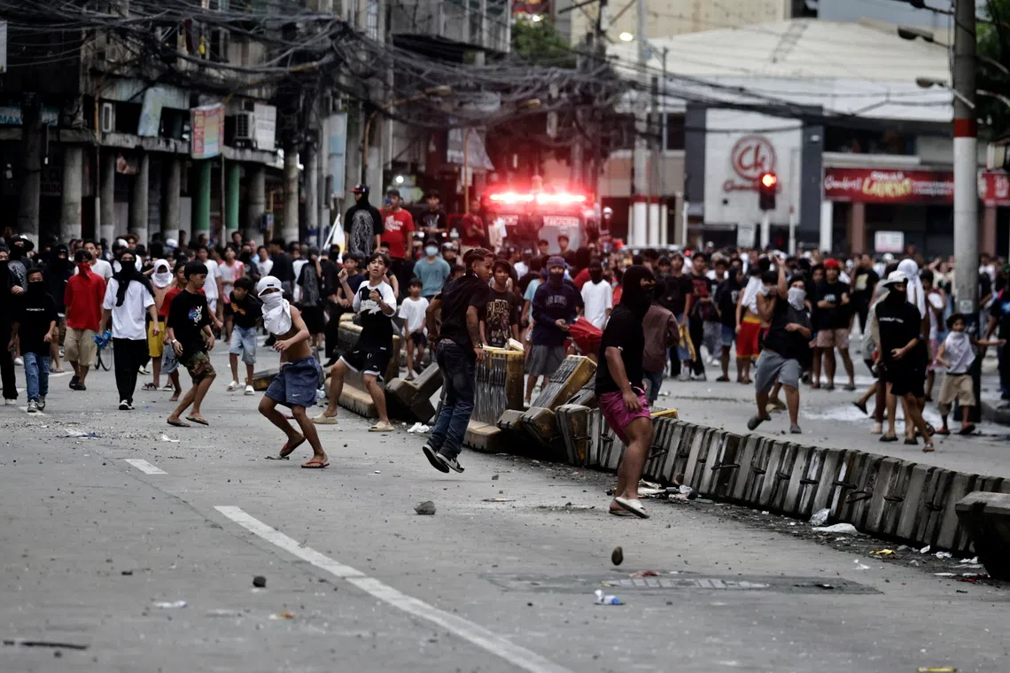 Protesters clash with anti-riot police during a rally in Manila on Sept 21.