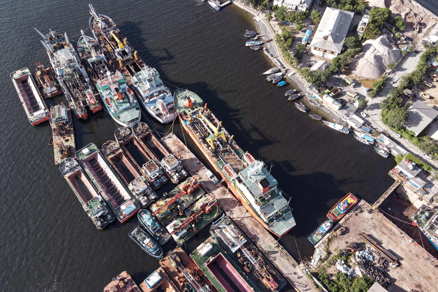 Coal barges seen moored next to a power plant in Jakarta on May 23, 2022.