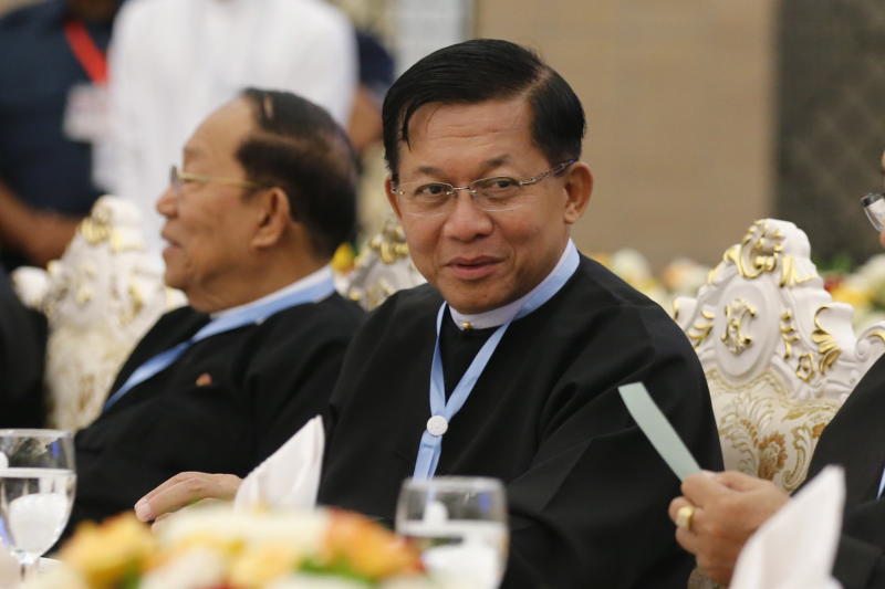 Myanmar's Senior General Min Aung Hlaing at a dinner of the third session of the 'Union Peace Conference - 21st century Panglong' in Naypyitaw, Myanmar, on July 11, 2018.