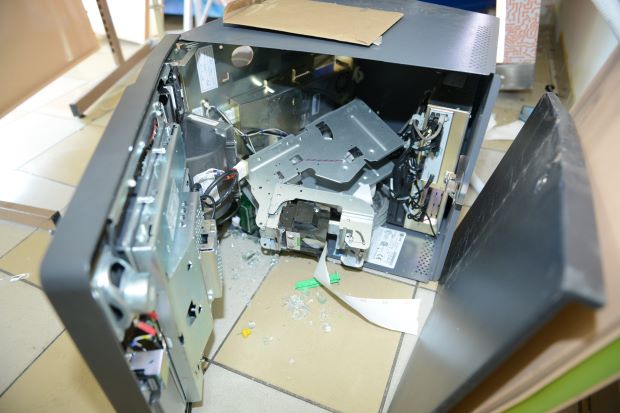 The men then subdued two Bangladeshi workers before using the hammer to break open the front of the ATM.