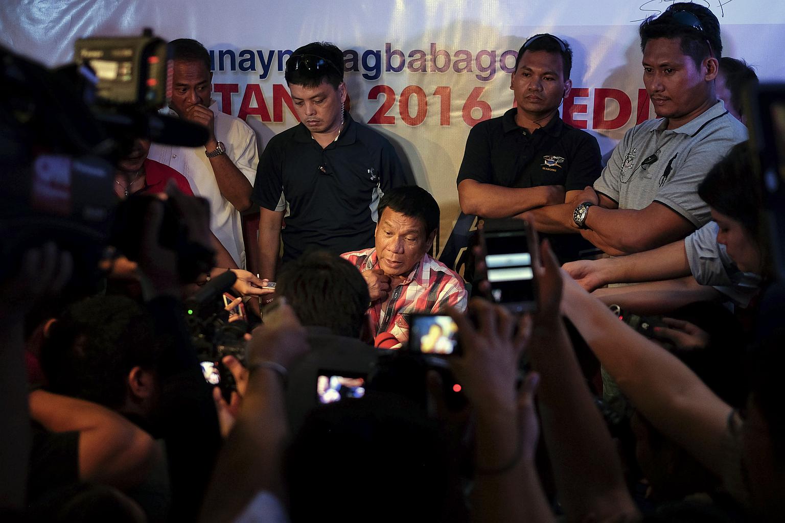Mr Rodrigo Duterte, mayor of Davao City, speaking to the media after casting his vote during the presidential election in Davao, Mindanao, the Philippines.