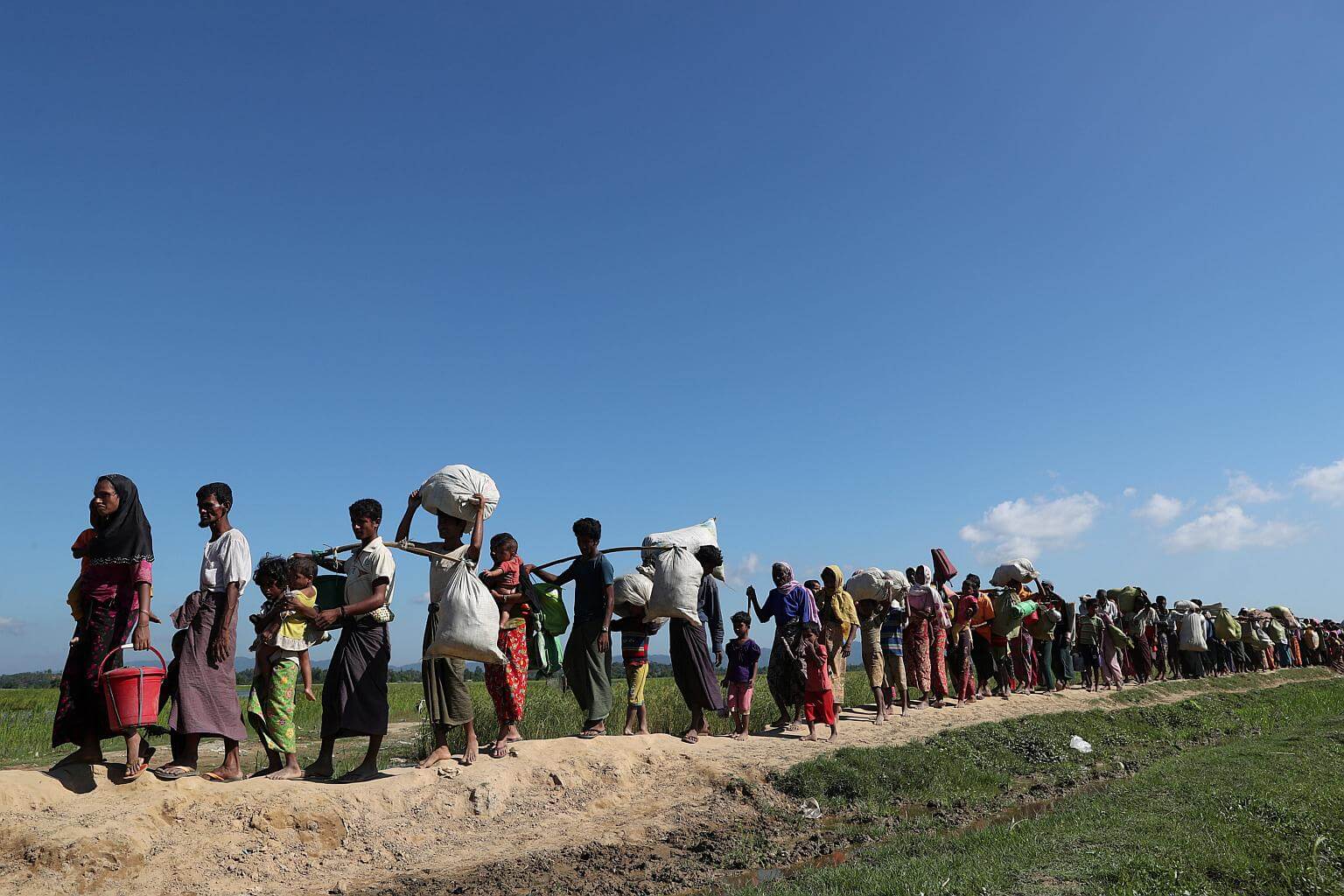 Rohingya refugees walk towards a refugee camp after crossing the border in Anjuman Para near Cox's Bazar, Bangladesh, on Nov 19, 2017.