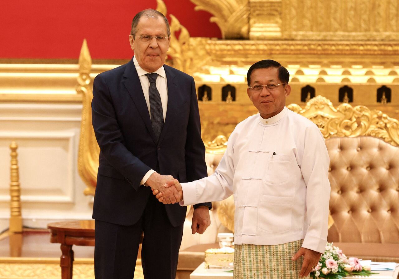 Russian Foreign Minister Sergei Lavrov meeting Myanmar's junta chief Min Aung Hlaing in Naypyidaw on Aug 3, 2022.