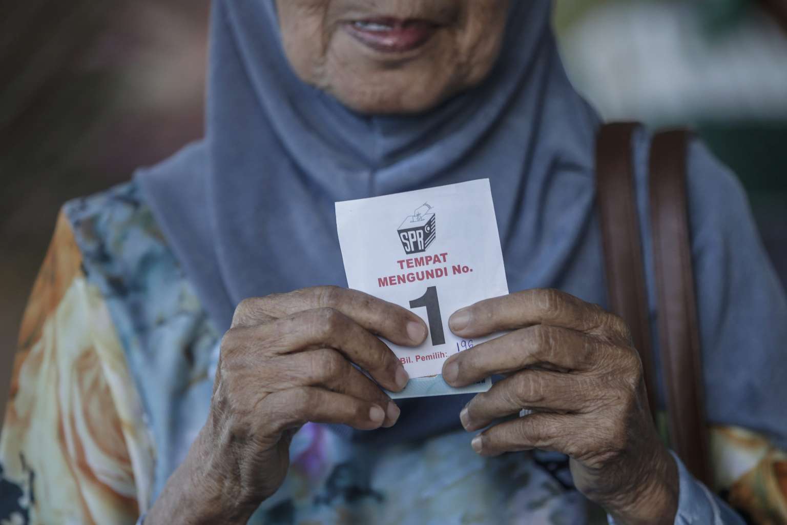 A Malaysian holds her queue number at a polling station in Kuching, Sarawak, Malaysia, May 7, 2016
